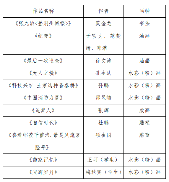 10月16日,由中国文化和旅游部、重庆市人民政府、四川省人民政府共同主办的中国第十四届艺术节正式开幕,湖北美术学院共11件作品入选本届艺术节全国优秀美术作品展览和书法篆刻作品展览,涵盖了书法、油画、水彩、版画、雕塑等多个艺术门类,彰显了学校高质量的创作成果。
