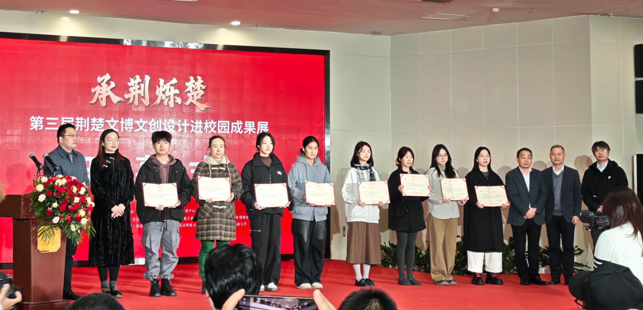 11月17日,由省文化和旅游厅(湖北省文物局)指导,省文物事业发展中心主办、武汉博物馆承办的“承荆烁楚——第三届荆楚文博文创设计进校园成果展”在武汉博物馆开幕。省文化和旅游厅、武汉市文化和旅游局及省内12家文博单位,湖北美术学院等8所高校设计院系相关负责同志和多家文创企业代表出席开幕仪式。