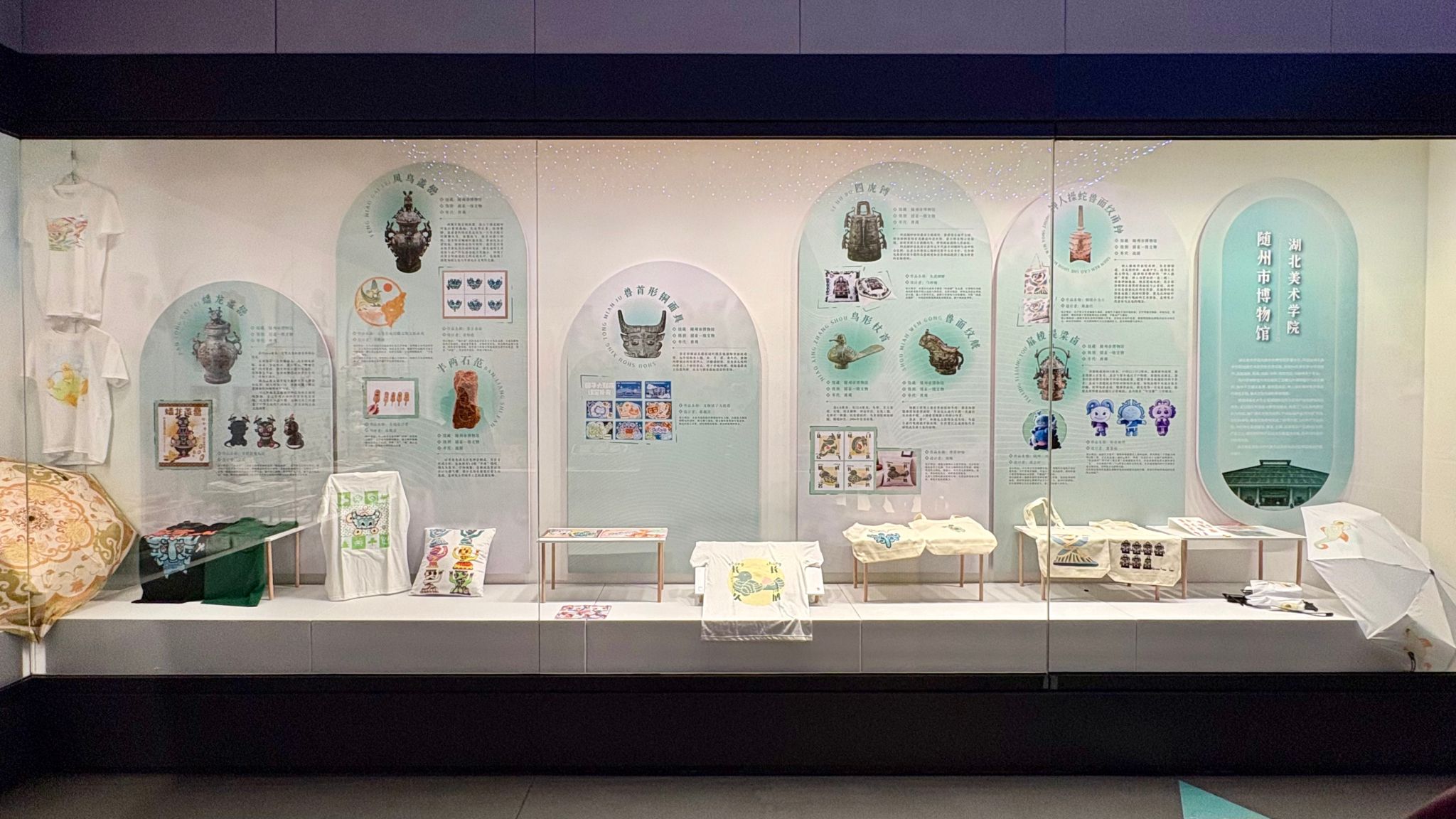 我校绘画学院插画艺术研究所团队(插画艺术专业)负责组织参与此次成果展。绘画学院吴穷老师带领团队组织40余名学生,针对随州博物馆的32件青铜器馆藏,提交了80项插画文创设计方案、140多个文创系列,并应用在涵盖服饰、餐具、文具、玩具等10个品类约330件产品之上。最终有97件产品设计方案通过验收,其中10件被评为优秀作品。